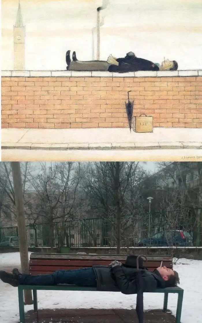 14. «Человек, лежащий на стене», Л. С. Лоури (1887 - 1976)