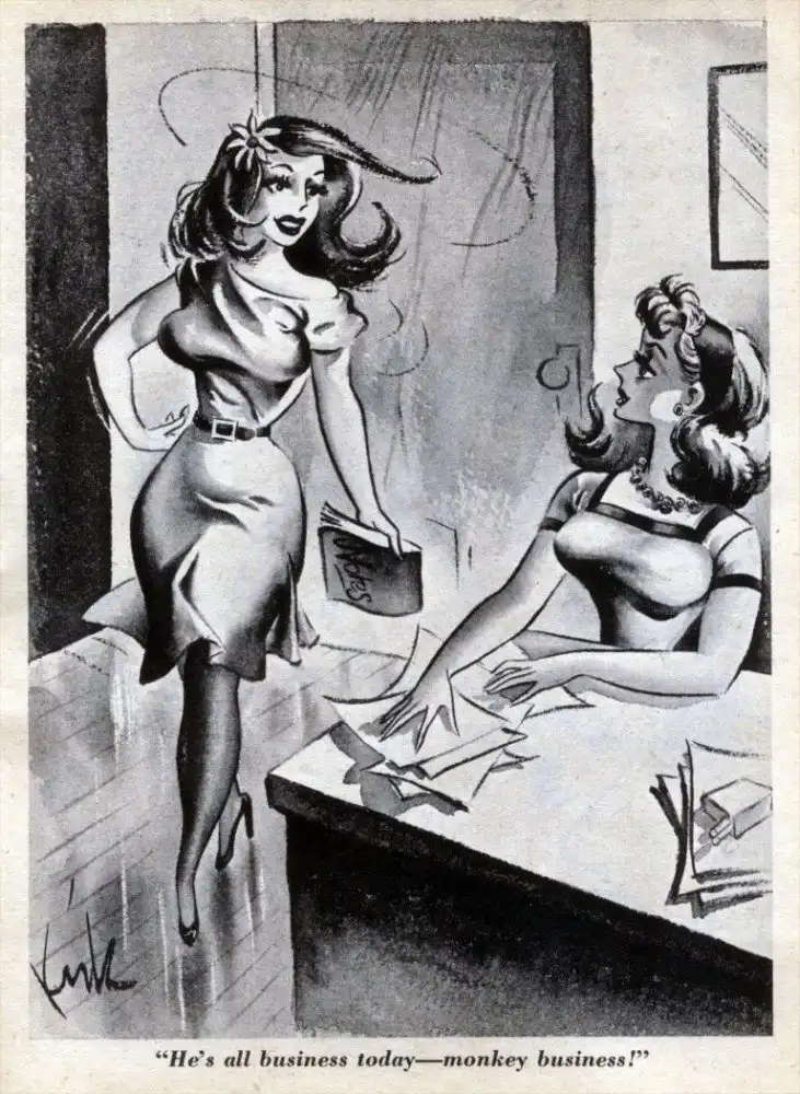 Несомненно, они были безумными сексистами в своем изображении. Но - это было другое время, верно? И не все секретарши были жертвами сексуальных домогательств. Интересно взглянуть на юмористические (но зачастую неразумные в их неуместности для сегодняшних чувств) комиксы комиксов прошлых лет. Смотрим?