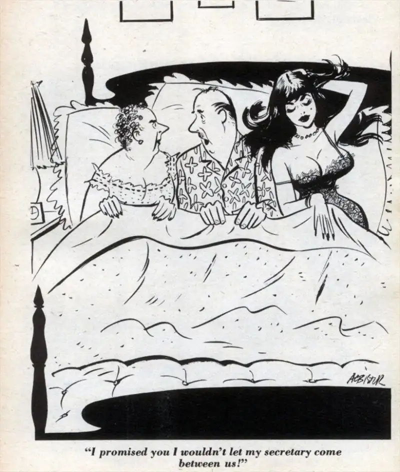 Еще до того, как на рабочих местах появились нормы толерантного, правильного поведения, между боссами и их секретаршами было много смешного и, как это видно сегодня, обидного для последних. Несомненно, это была скорей обнадеживающая фантазия для мужчин, чем реальность.