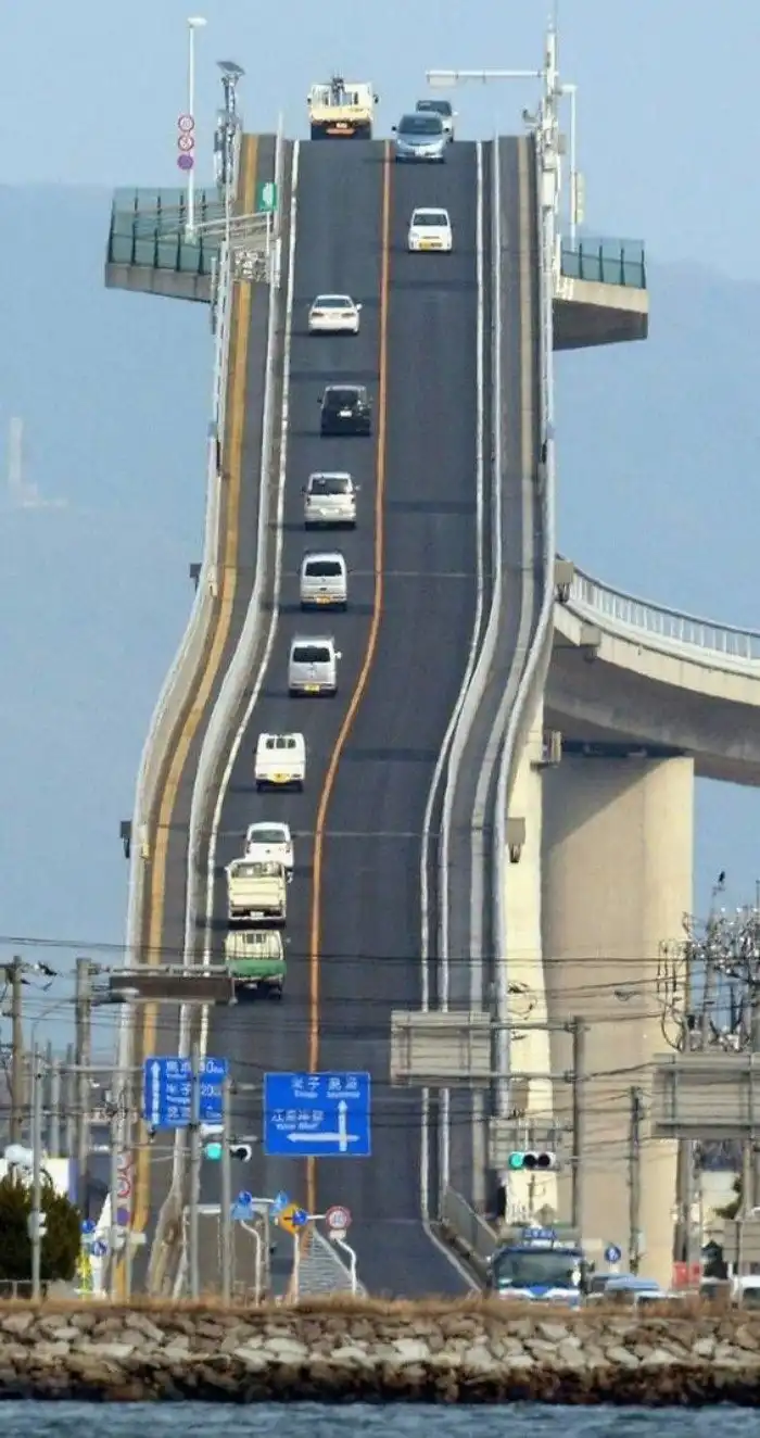 12. А это Eshima Ohashi Bridge, и это не иллюзия. Такой мост сконструирован для одной цели: чтобы суда могли проходить под ним без остановки движения транспорта