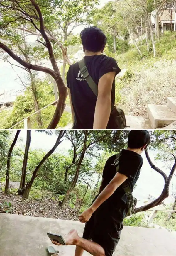 Этот парень хочет сделать так, чтобы все подумали, что у него есть подружка, а потому он идет на различные хитрости, чтобы сделать фотографии, которые создают впечатление о том, что у него действительно есть девушка.