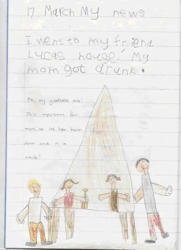 "Я пошел к своему другу Лукасу. А мама напилась. Боже мой! Маме просто необходимо время от времени отводить душу"