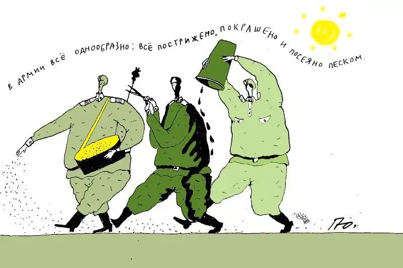 Армейские карикатуры, выполненные на основе афоризмов, высказываний и анекдотов про нашу армию, призваны вызвать улыбку на лице военнослужащих и гражданских.