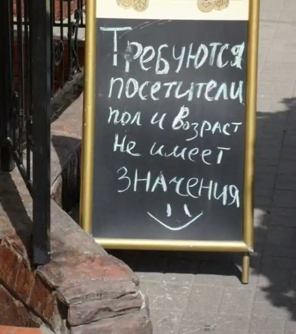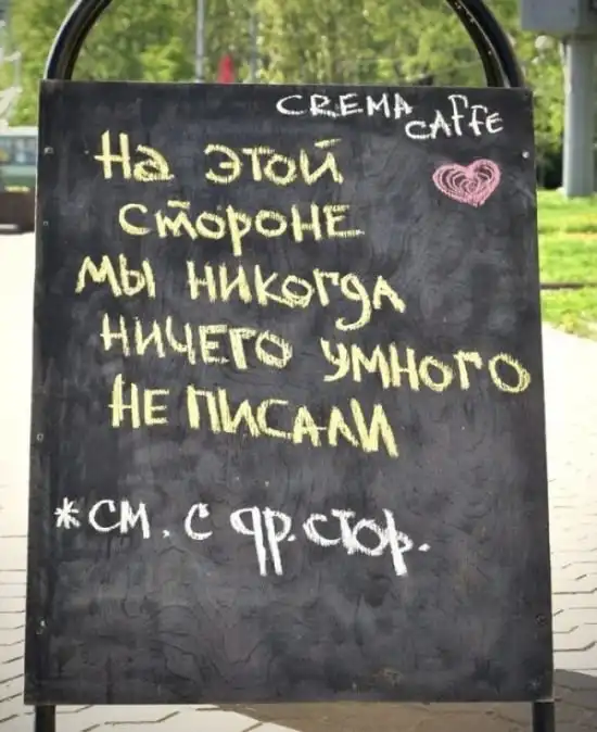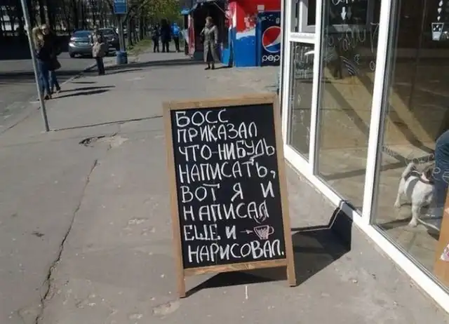 Предлагаем вашему вниманию доски с объявлениями, которые обычно устанавливают у кафе, чтобы завлекать посетителей. Эти объявления составили гении маркетинга, а потому мимо них нельзя пройти просто так.