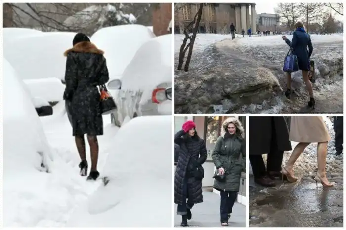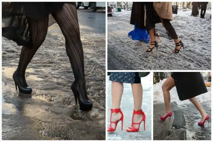 А туфельки-босоножки посреди зимы - очень важная вещь. Все должны видеть, какие у тебя есть туфли и как в них выглядят твои обмороженные ноги