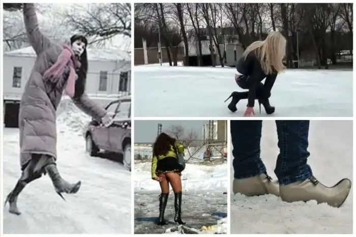 Ну и конечно же без каблуков - вообще никак нельзя - ну и что, что лед, ну и что, что переломают себе все кости - зато как смотрится!