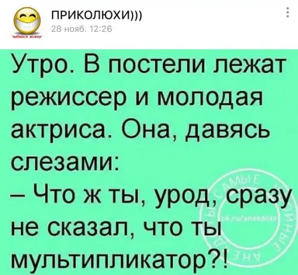 В подборке присутствуют: переписки, сообщения, фотографии, ну и просто анекдоты из ранее упомянутой соц. сети. :haha: