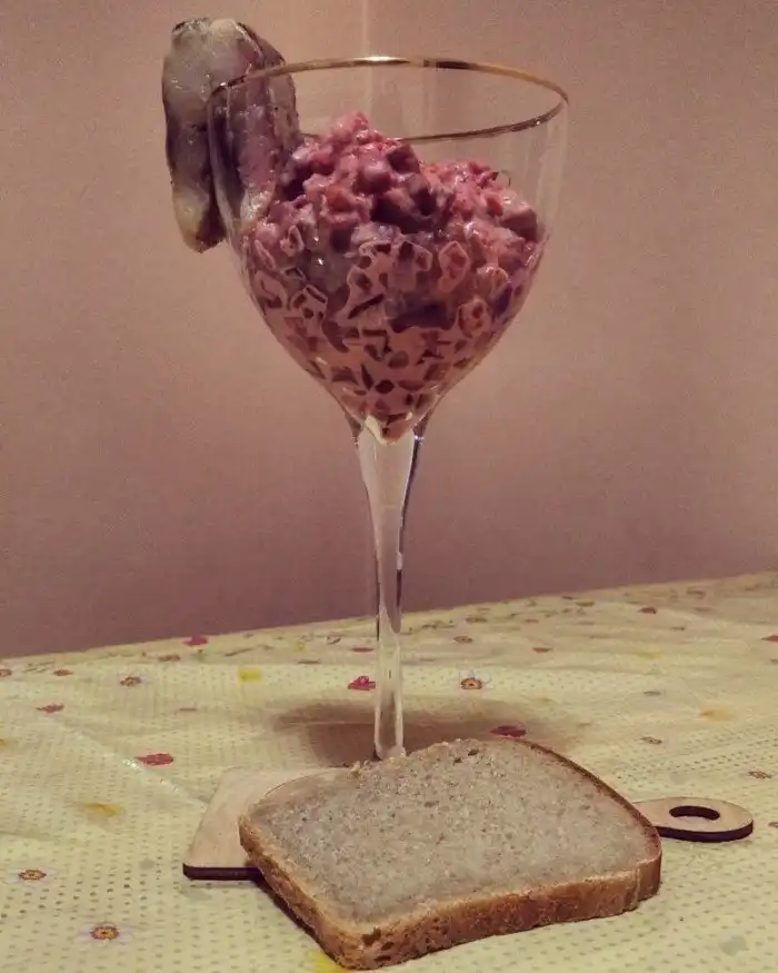 Обычный винегрет с селедкой, видимо, приобретает совсем другой вкус при такой подаче