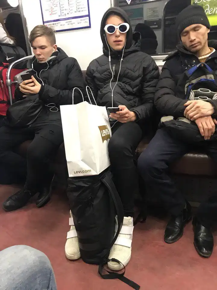 Очередная подборка фотографий странных и модных персонажей, которых можно встретить в российском метро.