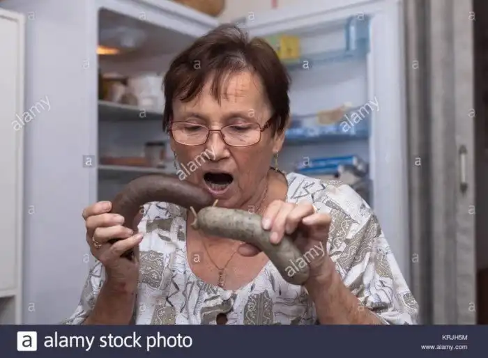 14. Просто пожилая женщина и мясо