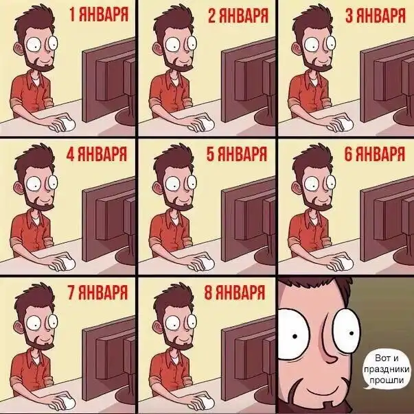 Новогодние каникулы, которых все мы так ждали, подходят к концу, а это значит, что вскоре всем нам придется вновь выйти на работу. Эта забавная подборка позволит с юмором взглянуть на то, чем запомнились длительные выходные и что нас ждет впереди.