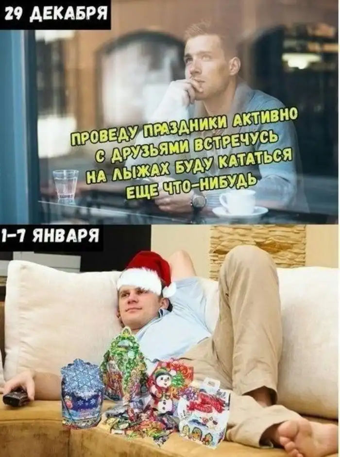 86% россиян именно так планировали провести эти праздничные 10 дней, но поднять себя с дивана смогли лишь 50%