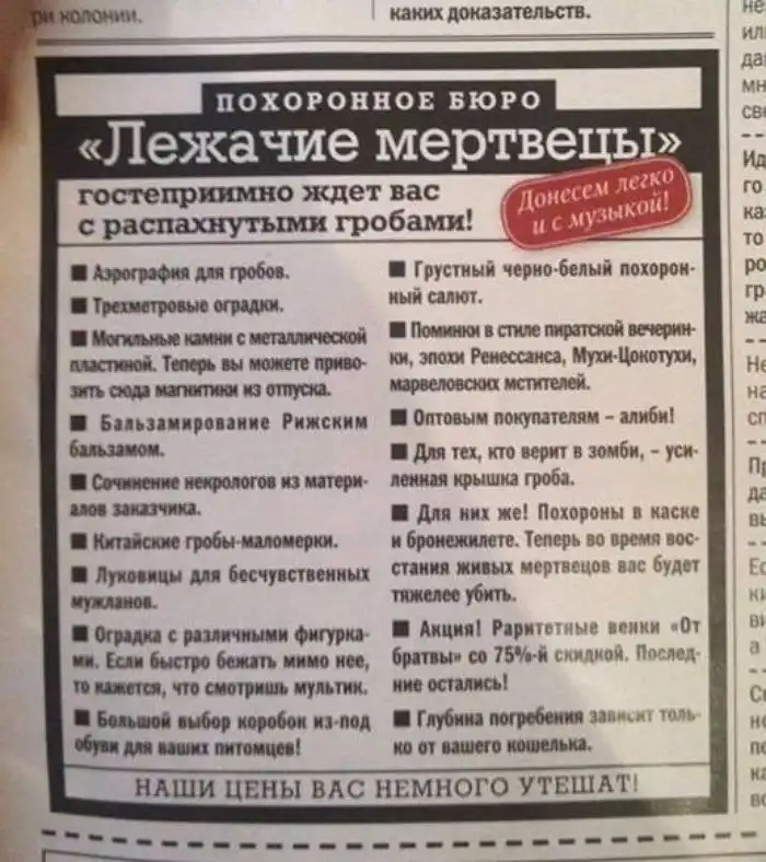В новостных лентах сейчас появилось тоже очень много черного юмора, причем инфоповоды подкидывает сама жизнь (или смерть)