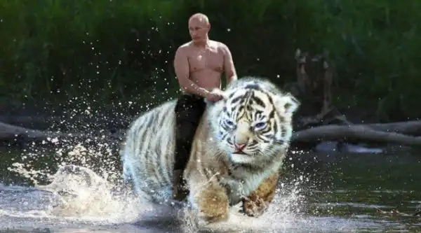 Фотография «недовольного» тигрёнка стала очередным объектом для «фотошоп-битвы» пользователей Reddit. Снимок в декабре 2015 года сделал фотограф дикой природы Пол Виггин (Paul Wiggin). Пользователи изобразили тигрёнка в разных ситуациях и даже «посадили» ему (конечно же) на спину Владимира Путина.