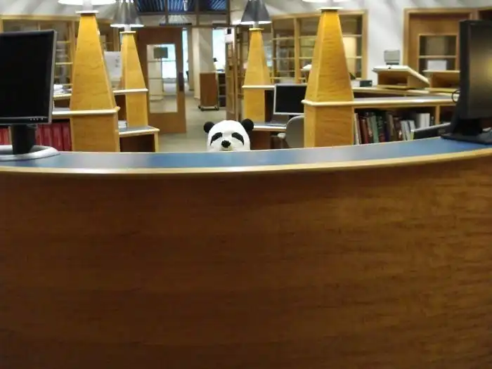 "Иногда я надеваю свою шапку-панду на работе. Для каждого посетителя библиотеки это выглядит так":