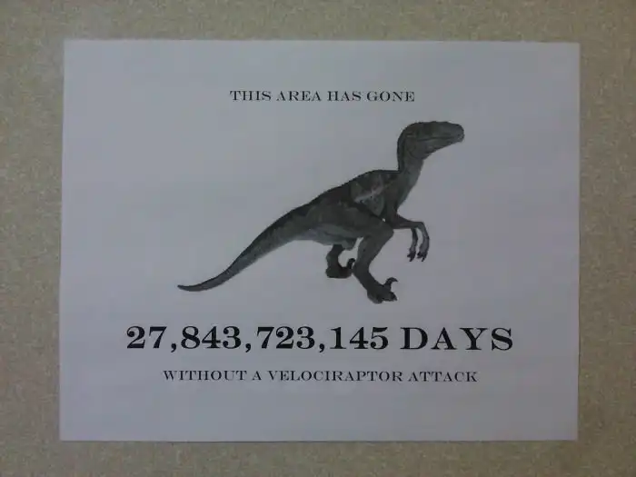 Спасибо библиотеке за полезные факты: "Уже 27,843,723,145 дней эту местность не атаковали велоцирапторы"