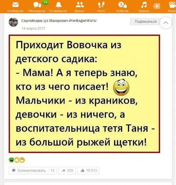 В подборке присутствуют: переписки, сообщения, фотографии, ну и просто анекдоты из ранее упомянутой соц. сети. :haha: