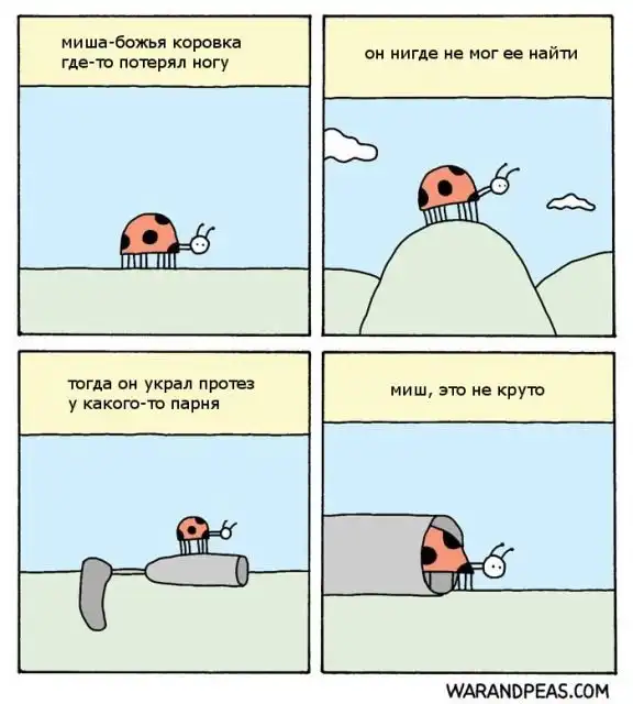 В 2011 году художники Джонатан Кунц и Элизабет Пинч запустили проект комиксов под названием «Война и мир». Это жесткий черный юмор в картинках, у которого есть множество поклонников по всему миру. На сегодняшний день этими комиксами фанатеют десятки тысяч человек. Может, и вас вдохновят эти работы.