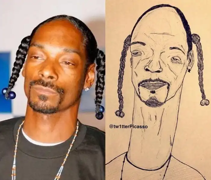 Чувство юмора у tw1tterpicasso проявляется не только в карикатурах, но и в колких описаниях. На карикатуре Вупи Голдберг он, например, пометил рэпера 2chainz, похожего на актрису стилем причёски.