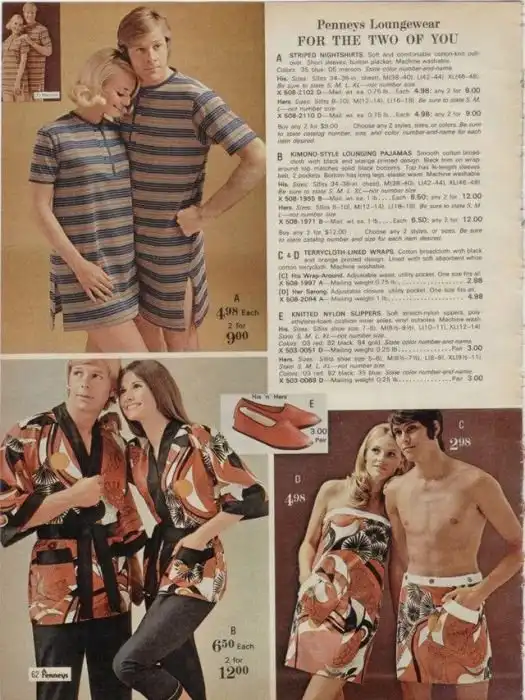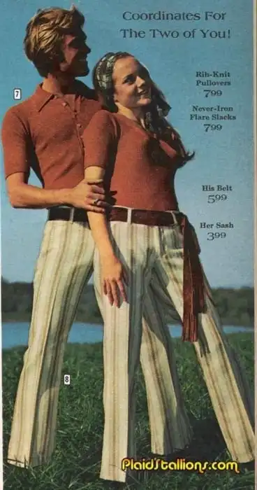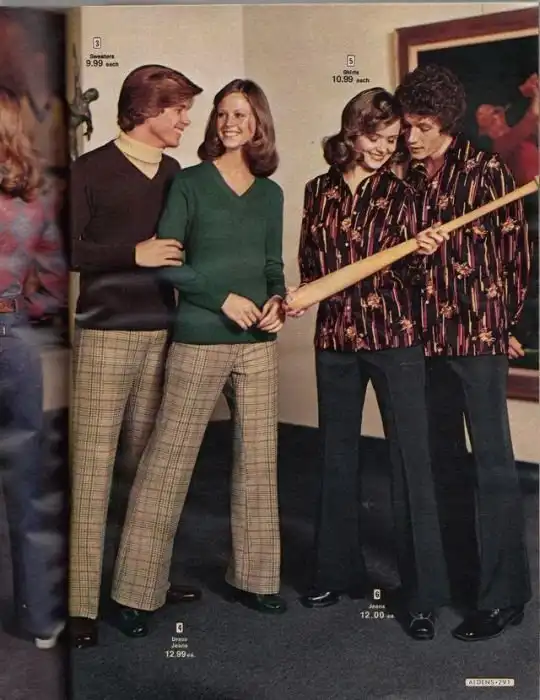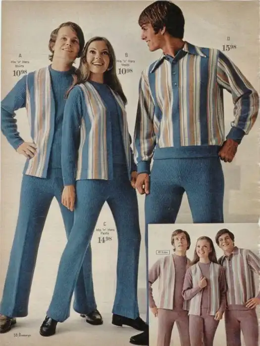 Культура хиппи отразилась на моде 60-х и 70-х годов прошлого столетия. Расклешенные брюки, свободные кофты и необычные цветовые сочетания стали обычным явлением того времени. Cтиль Family look и вовсе предлагал мужчинам и женщинам практически одинаковые наряды. Предлагаем взглянуть на модные журналы тех лет.