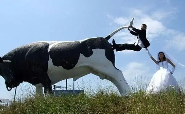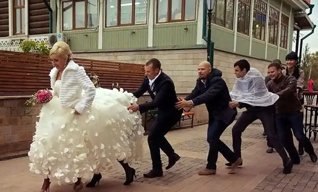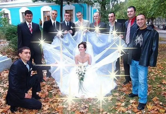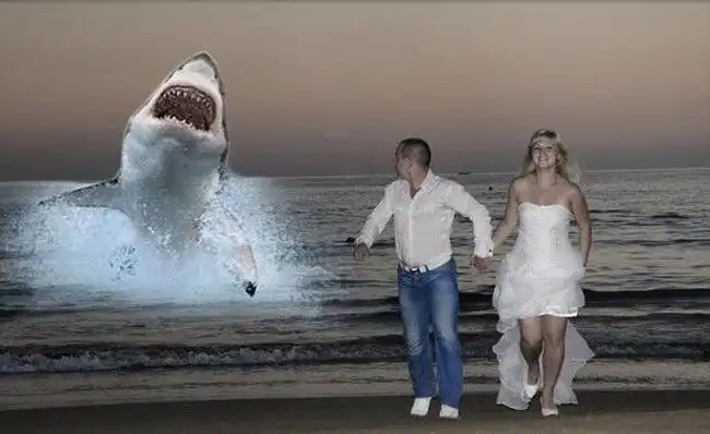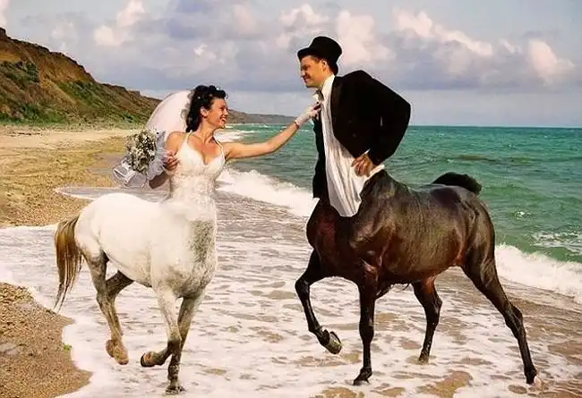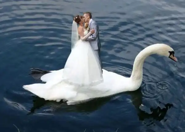 Когда молодожены ведутся на предложения криворуких фотографов с дикой фантазией, на свет появляются трешевые свадебные снимки, на которых резвятся невеста-кобыла и жених-кентавр, пара плывет верхом на гигантском лебеде или новобрачная несется по воде на реактивном бзде.