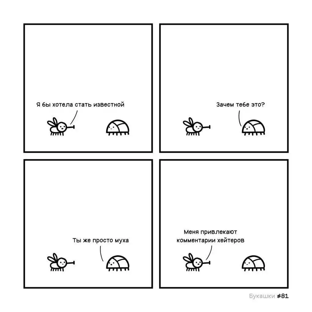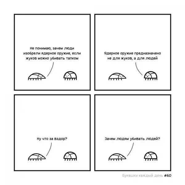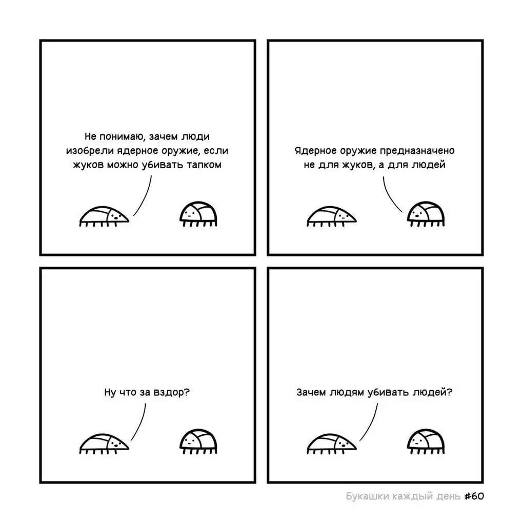 В январе 2018 года на просторах социальной сети «ВКонтакте» появилось одно любопытное сообщество. Называется оно «Букашки», и название говорит само за себя: это комиксы о жизни букашек в суровом и безжалостном мире от иллюстратора Евгения Зелёного.