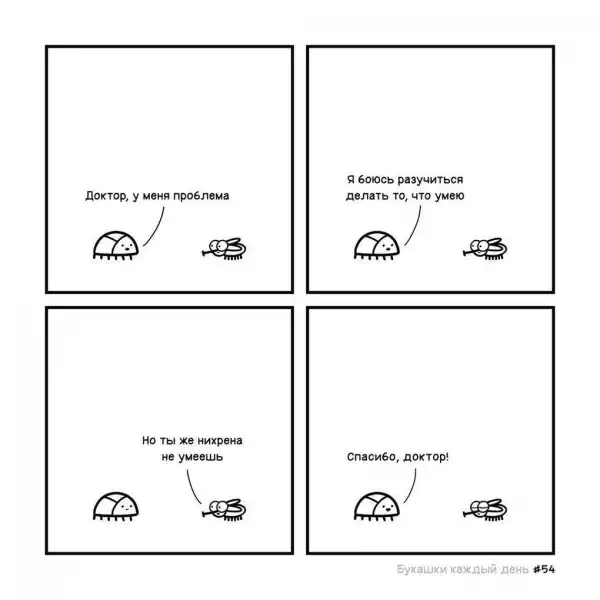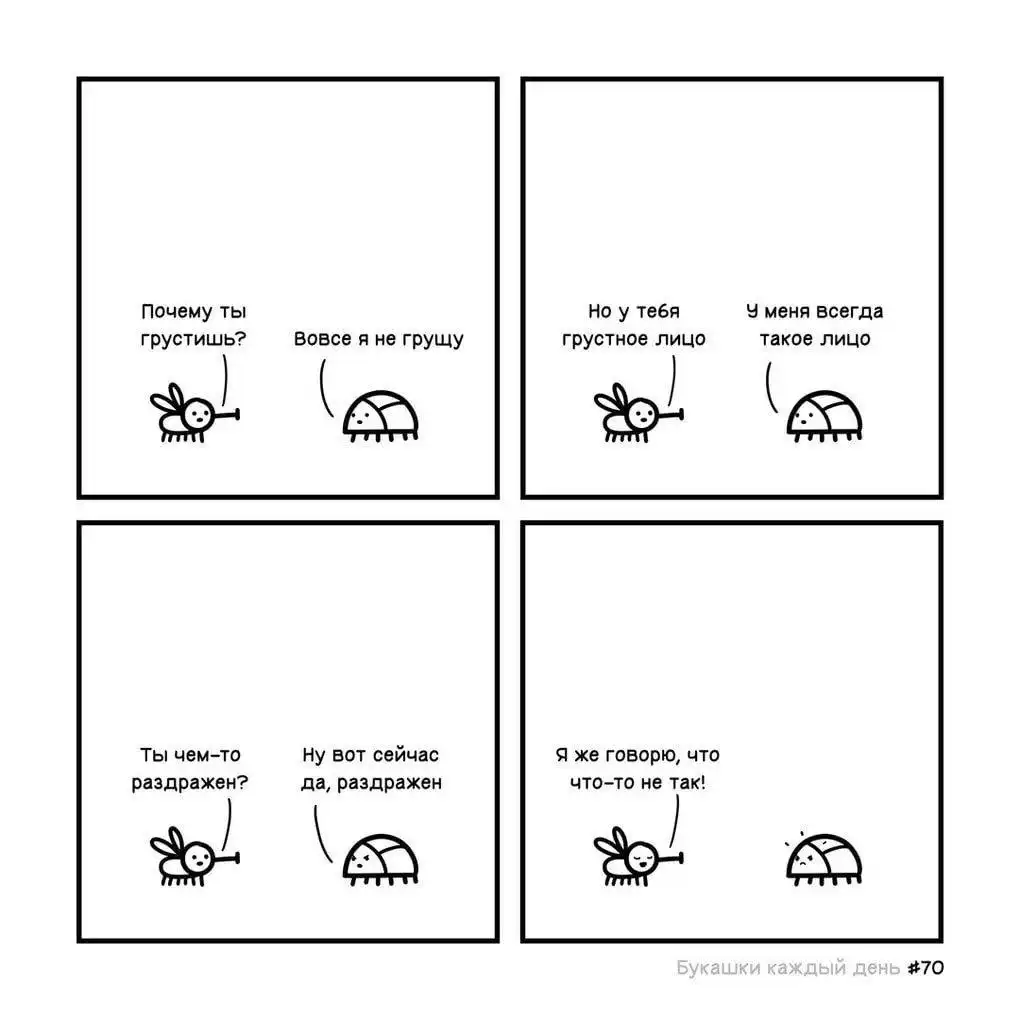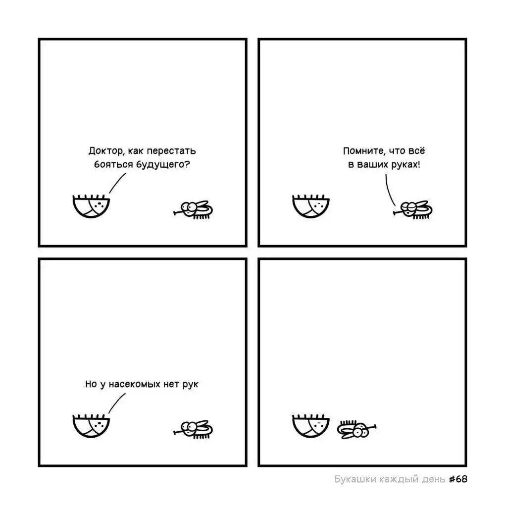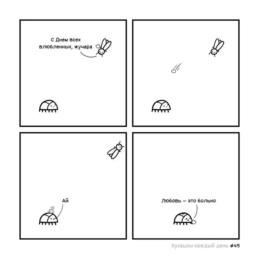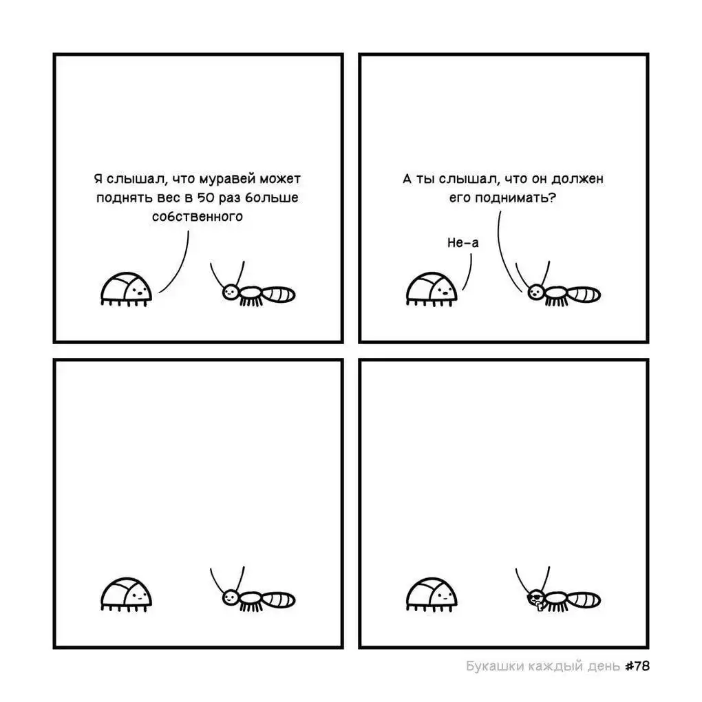 Изначально автор назвал свой проект «Букашки каждый день», но что-то пошло не так, и из-за загруженности он не успевал выпускать картинки ежедневно. Эти иллюстрированные истории больше напоминают мини-сериал, где жучки ежедневно сталкиваются со своими насекомыми проблемами, которые порой оказываются очень похожими на человеческие, и решают их лаконично и с очень тонким юмором.