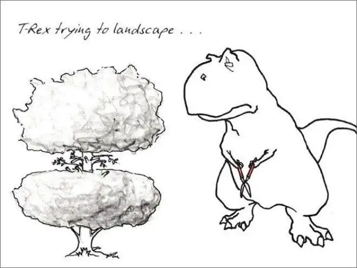 13. «Ти-Рекс пытается красиво подстричь кустик…»