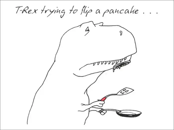 5. «Ти-Рекс пытается перевернуть блинчик в полёте…»