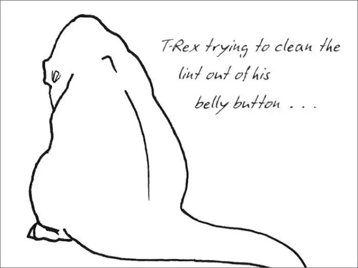 6. «Ти-Рекс пытает очистить свой пупочек от катышков…»