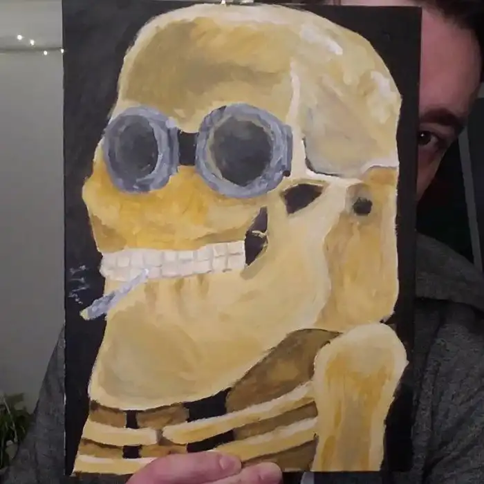 Но самая жуткая картина Гриффина — это, конечно, очередная пародия на Ван Гога. На этот раз — «Череп с горящей сигаретой».