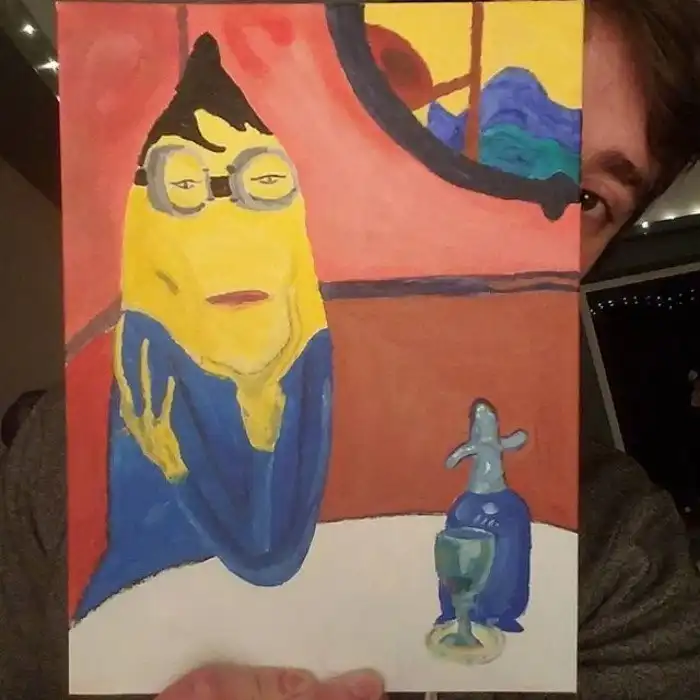 Причём он не является фанатом мультфильма (смотрел лишь одну часть), просто считает, что эти жёлтые создания идеально подходят на роль тех, кем можно заменить людей на известных картинах. Этим он и занимается. Из-за своих анатомических особенностей миньоны сильно преображают пародируемые Гриффином полотна, делая их даже слегка устрашающими. Но это-то и делает его творения особенными. Взгляните!