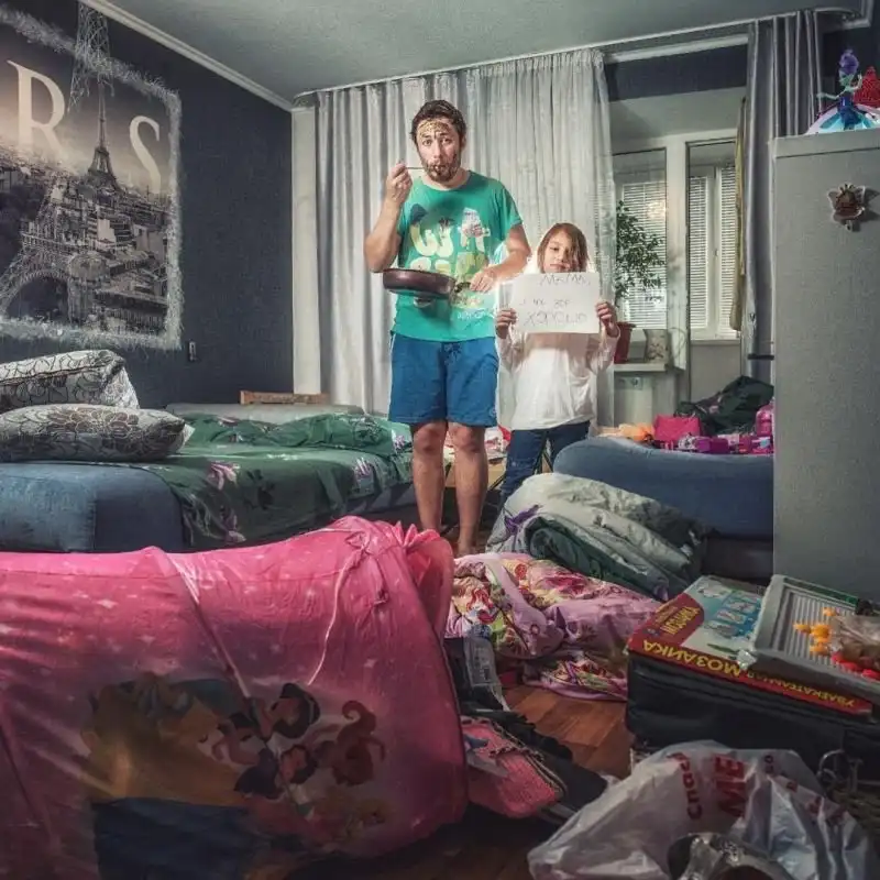 Жительница Тюмени отправлялась в командировку, а потому надавала мужу Марату и семилетнему чаду кучу ценных указаний. Чтобы показать беспокойной супруге и маме, что у них все хорошо, отец и дочь радовали ее снимками своего быта, от которых у любой хозяйки волосы бы встали дыбом.