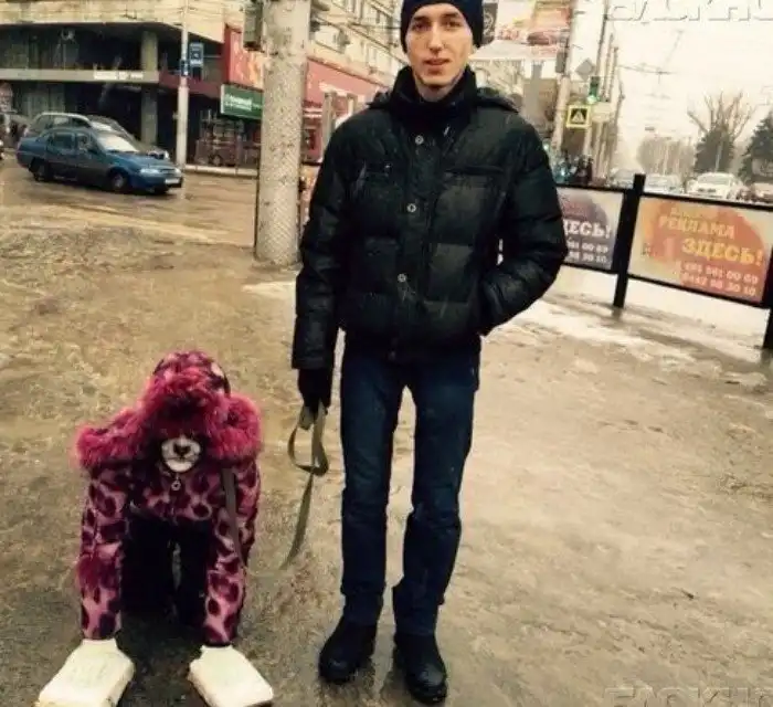 3. В Волгограде мужчина выгуливает женщину на поводке