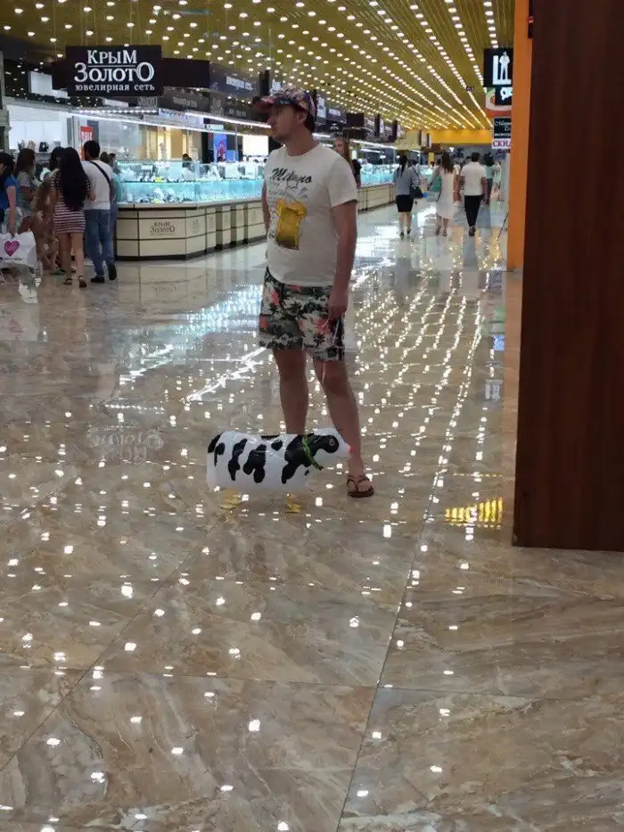 13. В Севастополе с надувной коровкой по ТЦ разгуливал мужчина