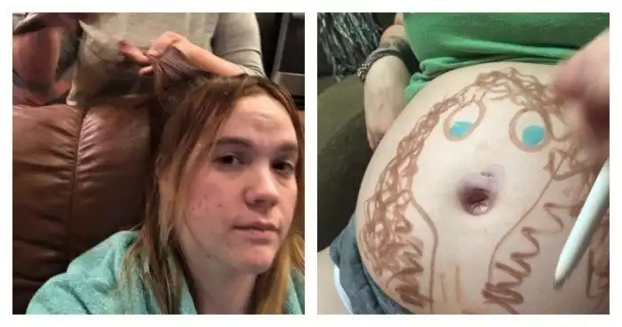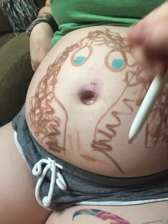 "Это я занимаюсь росписью ванной комнаты для клиента за 8 дней до родов. Не все так плохо!"