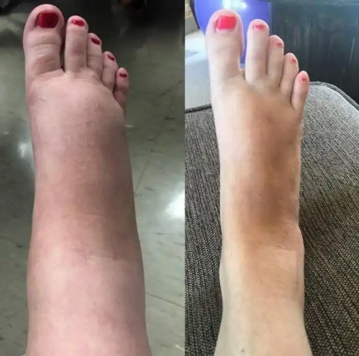 "Справа - моя нога до беременности. Слева - та же нога во время беременности".
