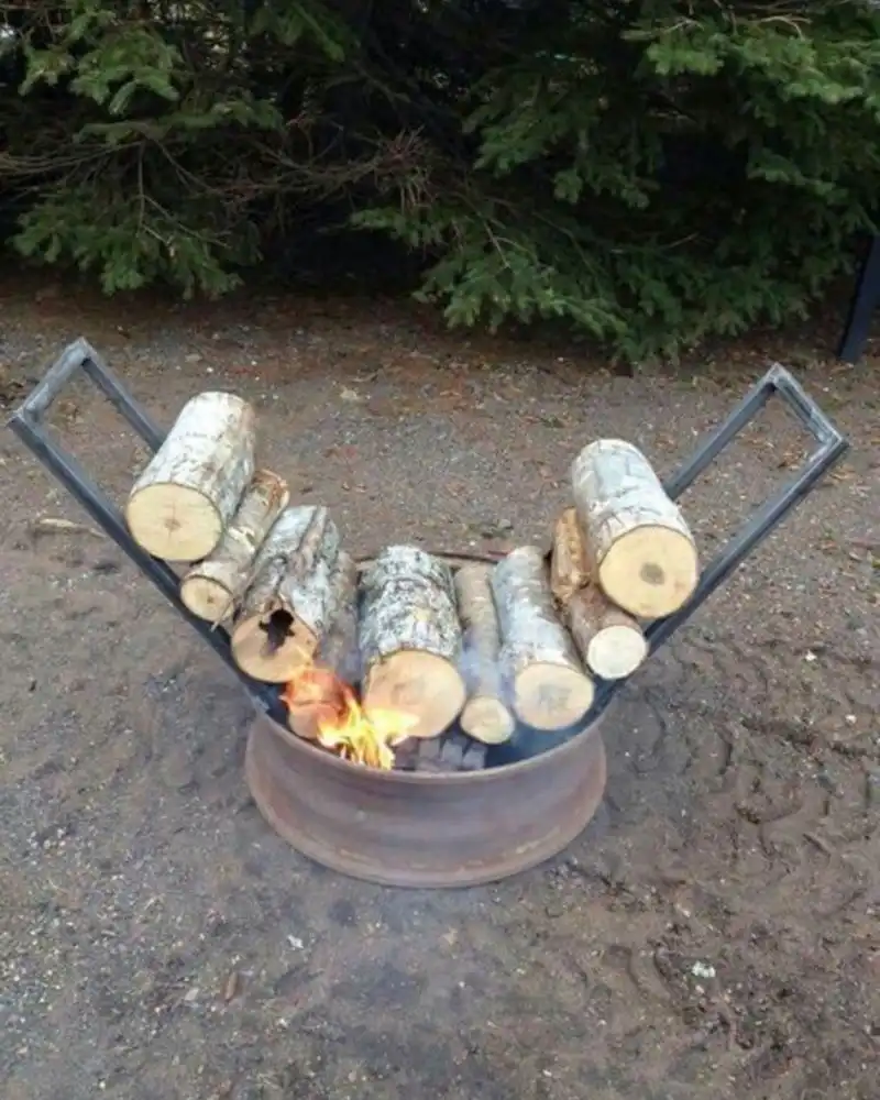 Стол из брёвен, арматуры и бетона? При желании возможно