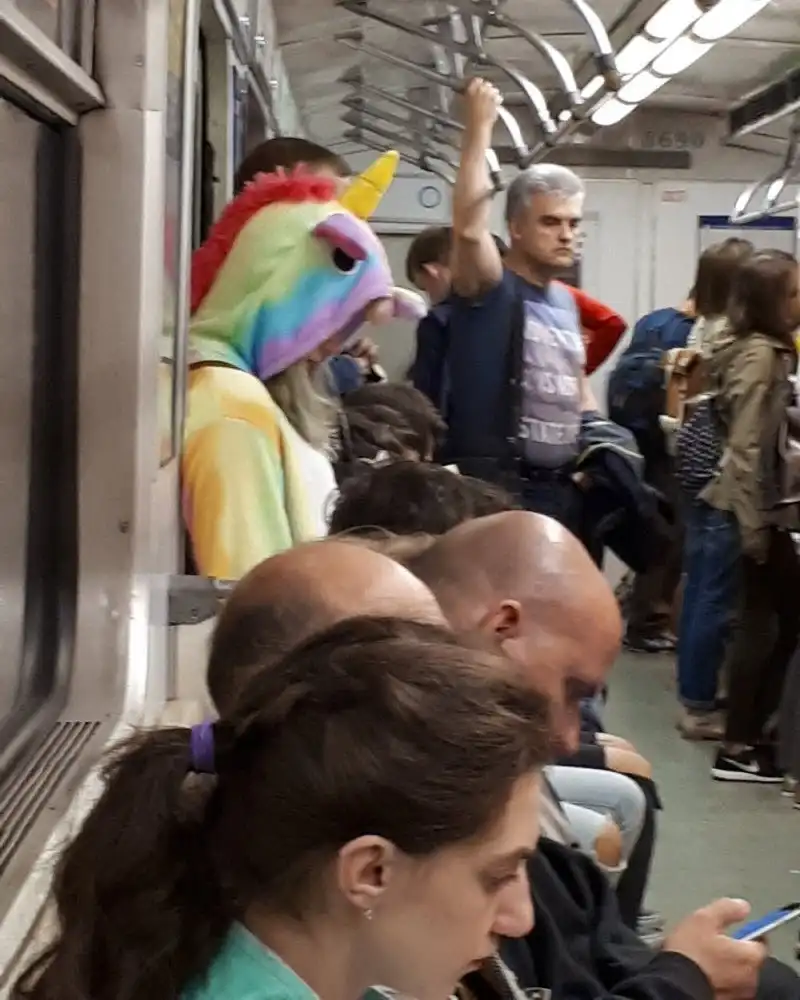 Очередная подборка фотографий странных и модных персонажей, которых можно встретить в российском метро.
