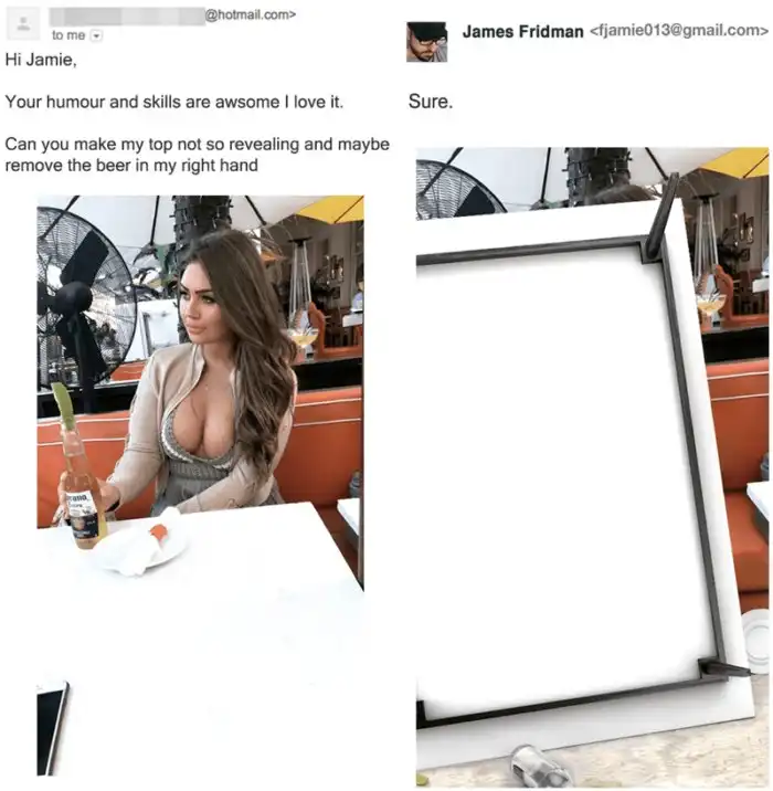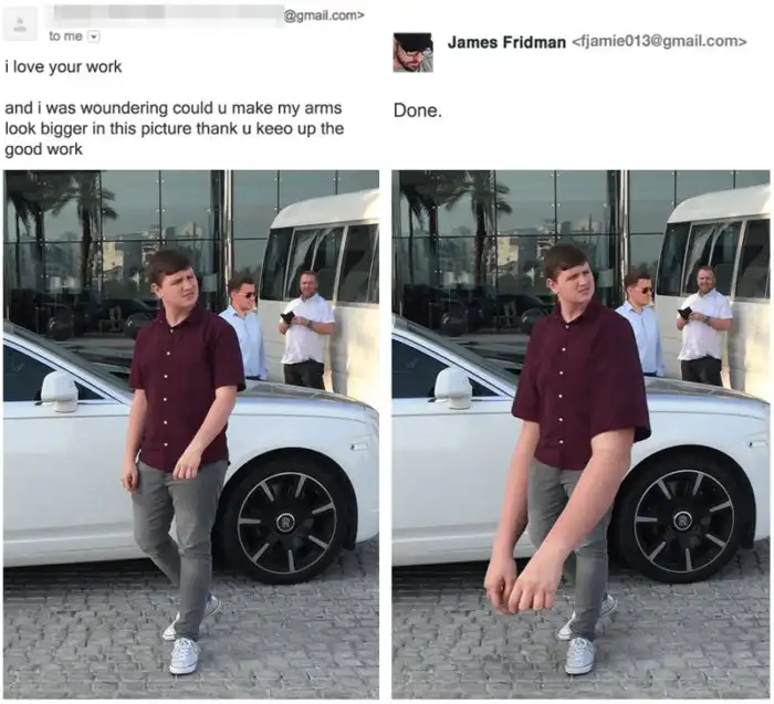 7. «Можешь сделать мои руки побольше? Спасибо, и продолжай работать в том же духе»