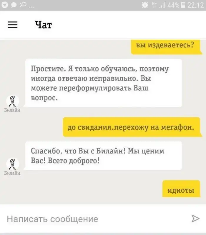 ИИ на службе Билайна. А может это даже не ИИ, а обыкновенный скрипт...