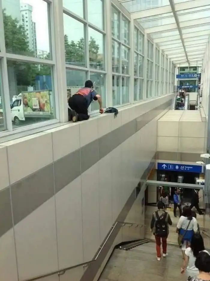 Это ж насколько сильно должно раздражать пятно снаружи, чтобы вот так вот отправиться его убирать…