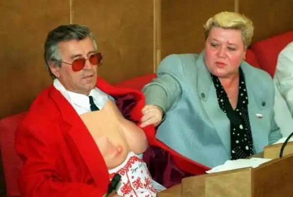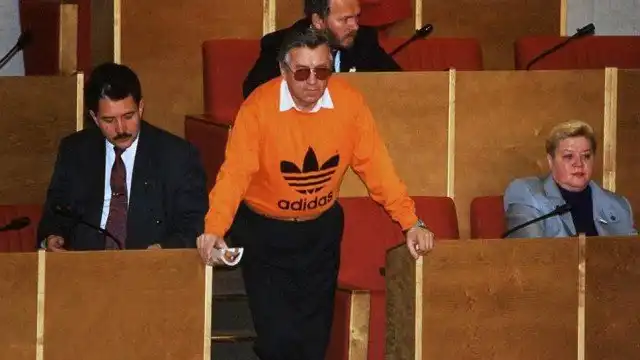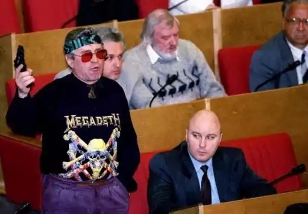 Вот чего не отнять у эпохи 90-х, так это эпатажа. Жириновский, Брынцалов, Мавроди - публичная политика и бизнес совсем не была похожа на сегодняшние вялые включения эфиров из Госдумы. Тогда все бурлило, кипело, коробки из под ксерокса полные денег заносились в парламент на глазах у всей страны, пьяный Ельцин ураганил почище Шнура, а выступления депутата Марычева затмевали по рейтингам любой Дом-2.