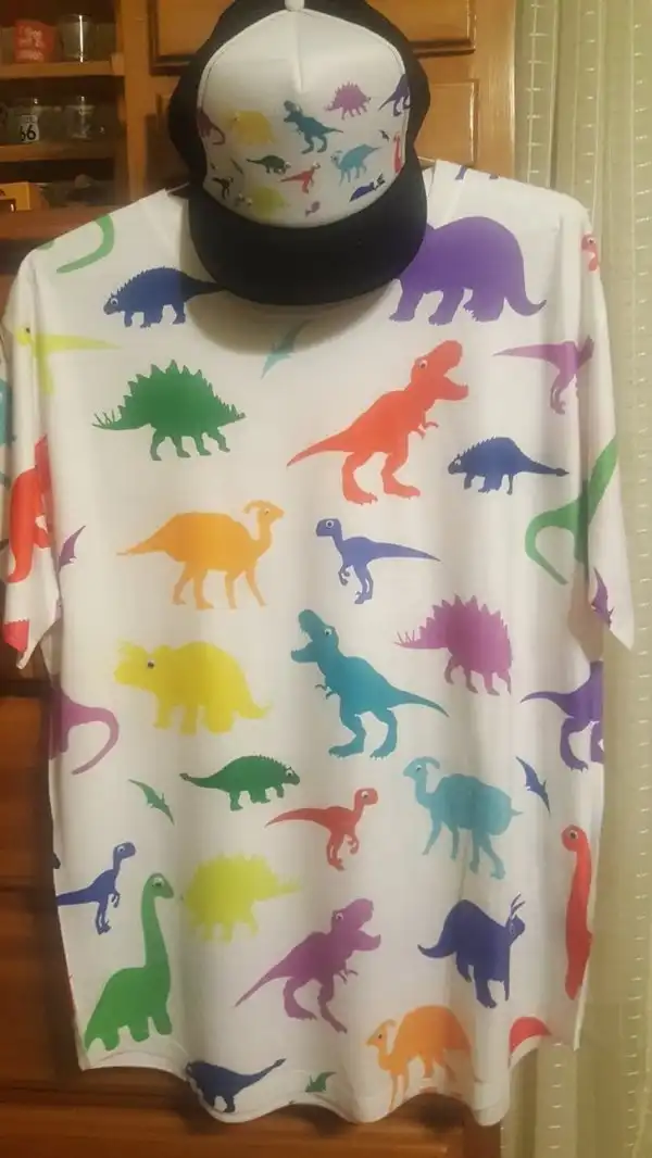 16. «Приклеил глаза динозаврам на своих футболке и кепке»