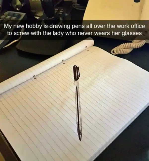 13. «Мое новое хобби — рисовать ручки по всему офису, чтобы разыграть коллегу, которая не надевает свои очки»