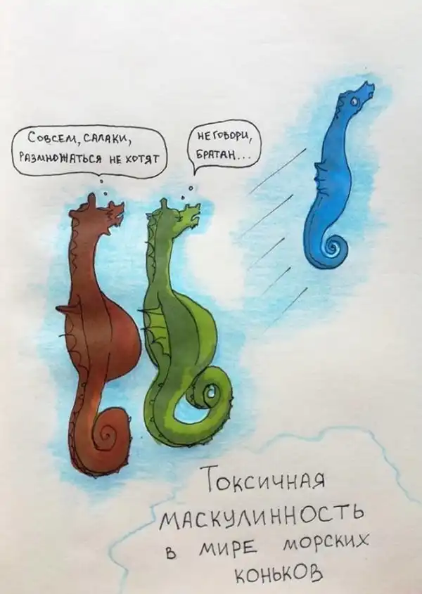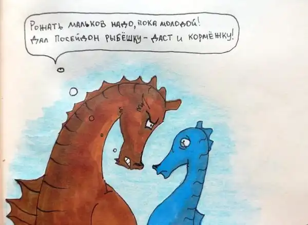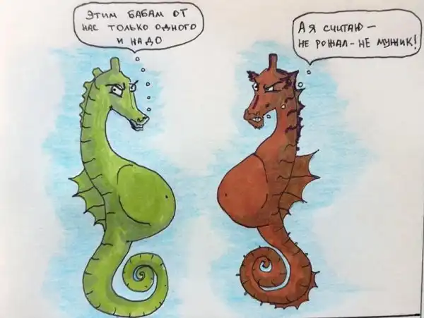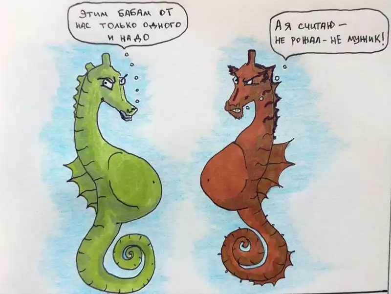 Особенность морских коньков заключается в том, что у них потомство вынашивает самец.