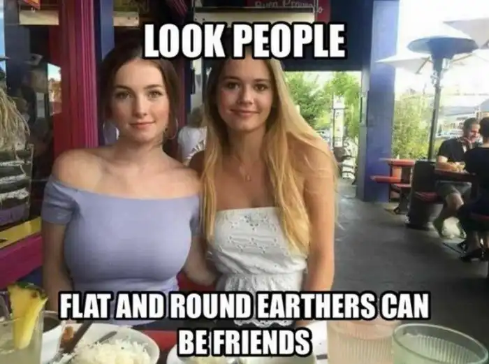 "Смотрите, люди, сторонники плоской и круглой Земли могут быть друзьями."