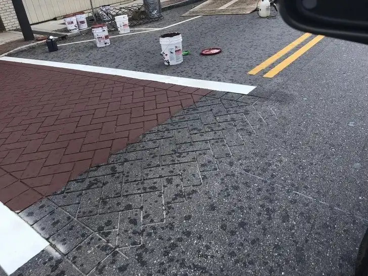 В асфальте вырезают углубления, затем дорожное покрытие красят - и в итоге получается дорога «из брусчатки»