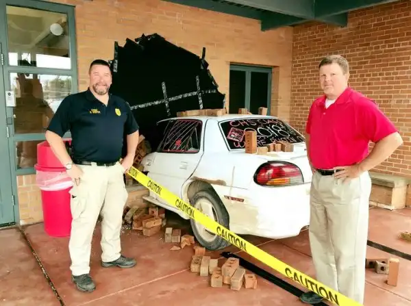 Ученики пробили стену школы на машине. Все это оказалось инсталляцией в честь окончания учебного года