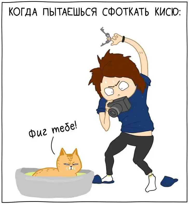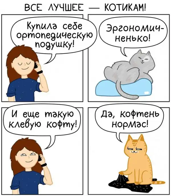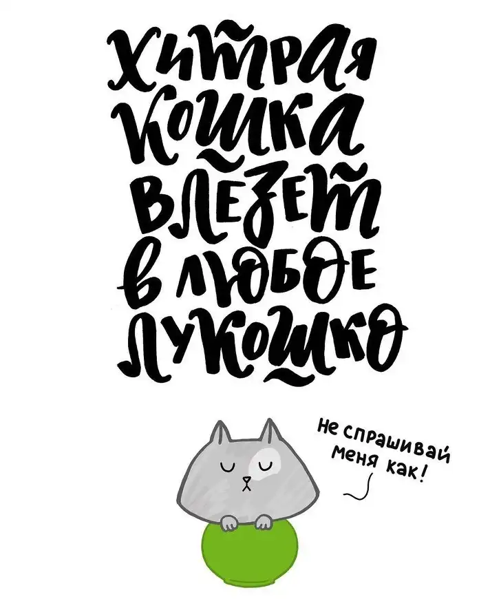 Лена Соломонова — иллюстратор и каллиграф, а также автор душевных комиксов «Лакшери-Котакшери». Герои ее рисунков живут у нее дома — это четыре симпатичных котика, каждый со своим характером и историей. Ситуации, описанные в комиксах, будут знакомы всем кошатникам, а главное, они нарисованы с юмором и любовью.